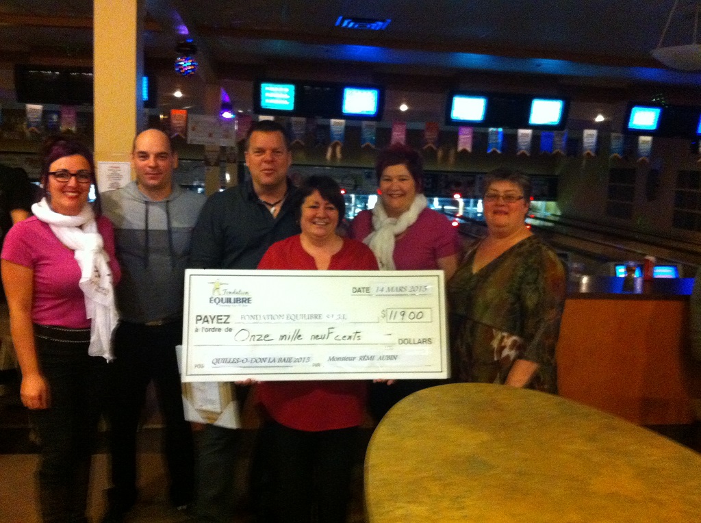 Le 12 mars 2016 se tenait le 23e Quilles-O-Don au profit de la Fondation Équilibre à l'Île du Quilleur de La Baie, sous la présidence d'honneur de Monsieur François Tremblay, conseiller municipal et président de l'arrondissement La Baie!